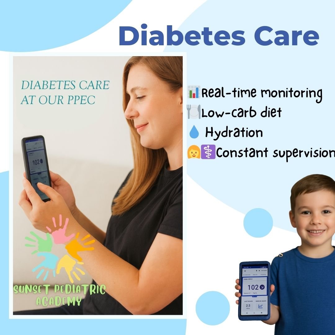 At Sunset Pediatric Academy, our PPEC (Prescribed Pediatric Extended Care) program is an invaluable resource for children with chronic conditions, such as diabetes. We provide specialized nursing care for 12 hours a day, Monday through Friday, tailored to the unique needs of each child. For children with diabetes, this care is essential to maintain stable blood glucose levels and promote overall good health.